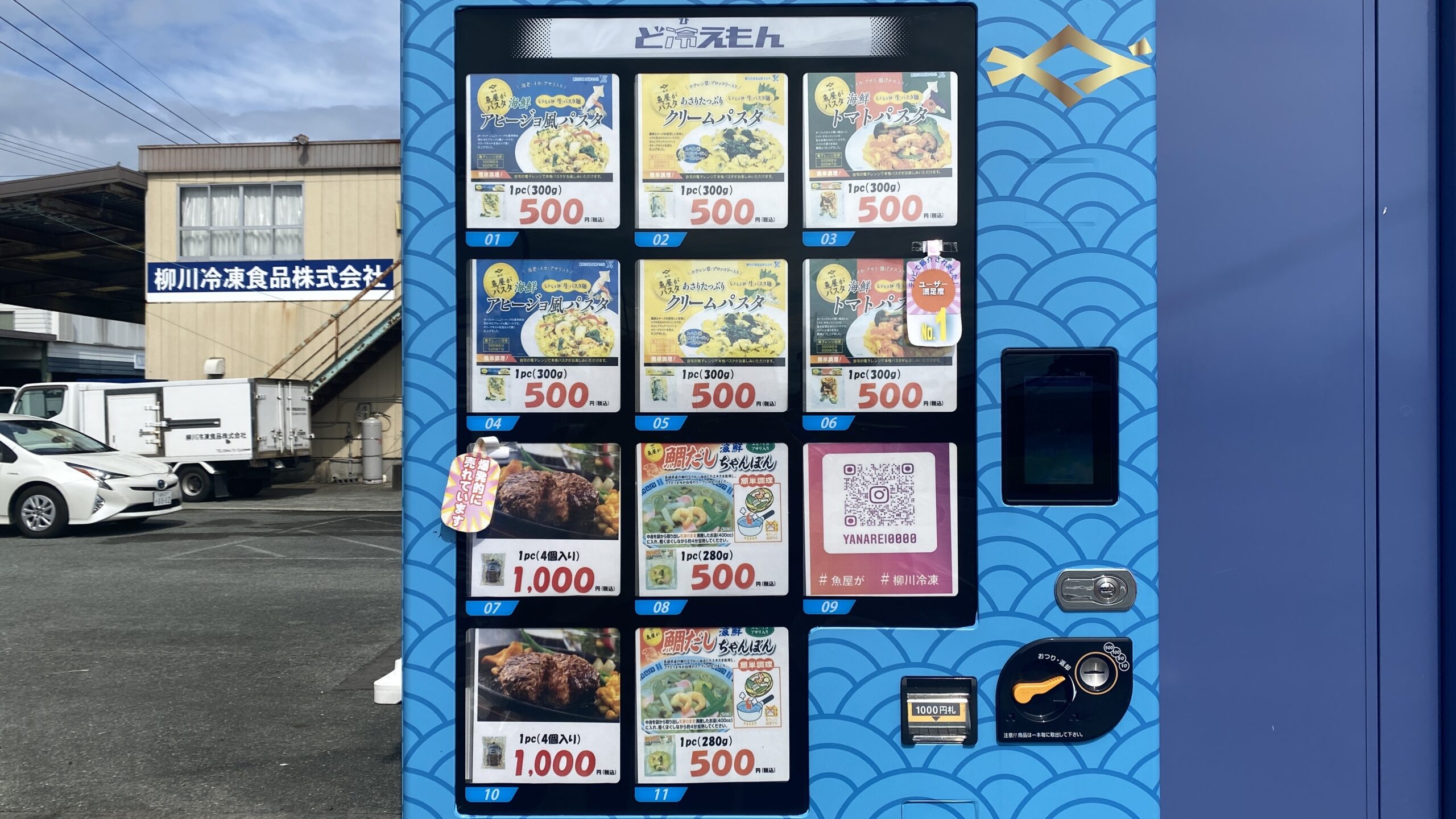 大力うどんから家に帰る途中、以前から気になっていた冷凍食品の自販機に寄る。